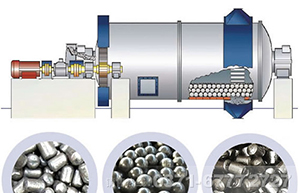 球磨機工作時主要是利用研磨體在磨倉內(nèi)隨著筒體的回轉(zhuǎn)而對物料進(jìn)行撞擊,致使物料被研磨成粉。球磨機的筒體為長形圓筒,筒內(nèi)裝有研磨體,研磨體一般為鋼制圓球,并按不同直徑和一定比例裝入筒中,研磨體也可用鋼段。根據(jù)研磨物料的粒度加以選擇,物料由球磨機進(jìn)料端空心軸裝入筒體內(nèi),當(dāng)球磨機筒體轉(zhuǎn)動時候,研磨體由于慣性和離心力作用,摩擦力的作用,使它附在筒體襯板上被筒體帶走,當(dāng)被帶到一定的高度時候,由于其本身的重力作用而被拋落,下落的研磨體像拋射體一樣將筒體內(nèi)的物料給擊碎。